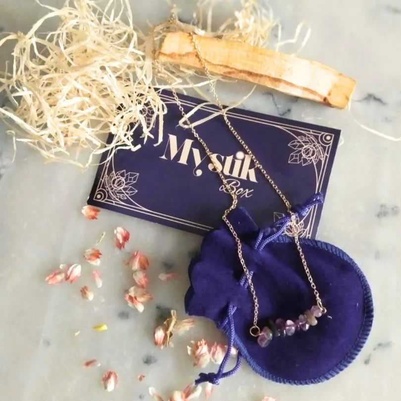 Recevez chaque mois un bijou porteur de sens + un message de l'univers pour mieux vous connecter à vous-même.